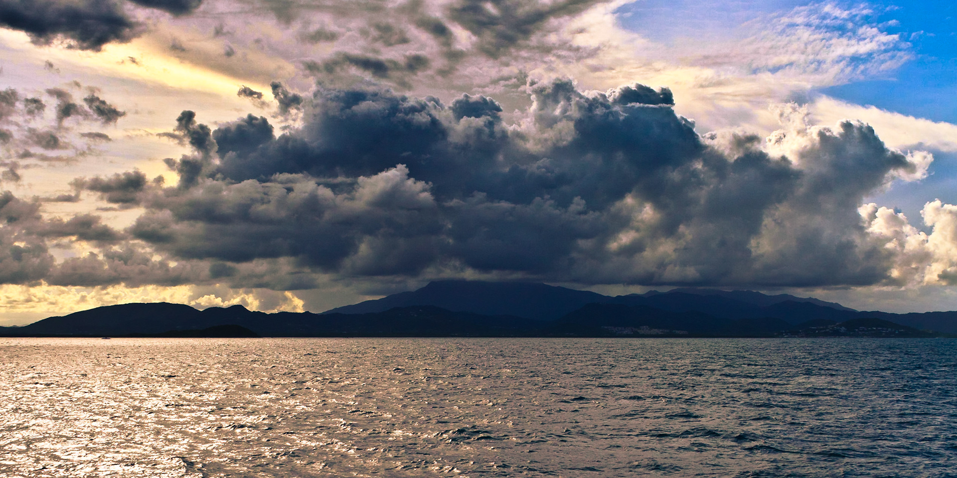 Atardecer sobre la isla Desecheo. Aguadilla, Puerto Rico.
