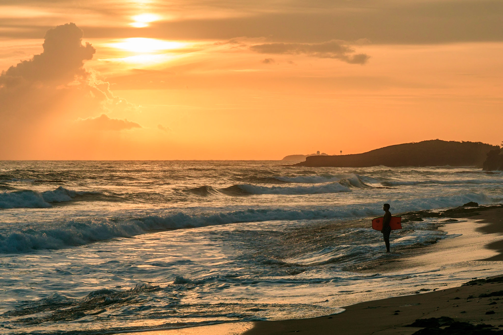 Caida del sol sobre la playa. Arroyo, Puerto Rico.