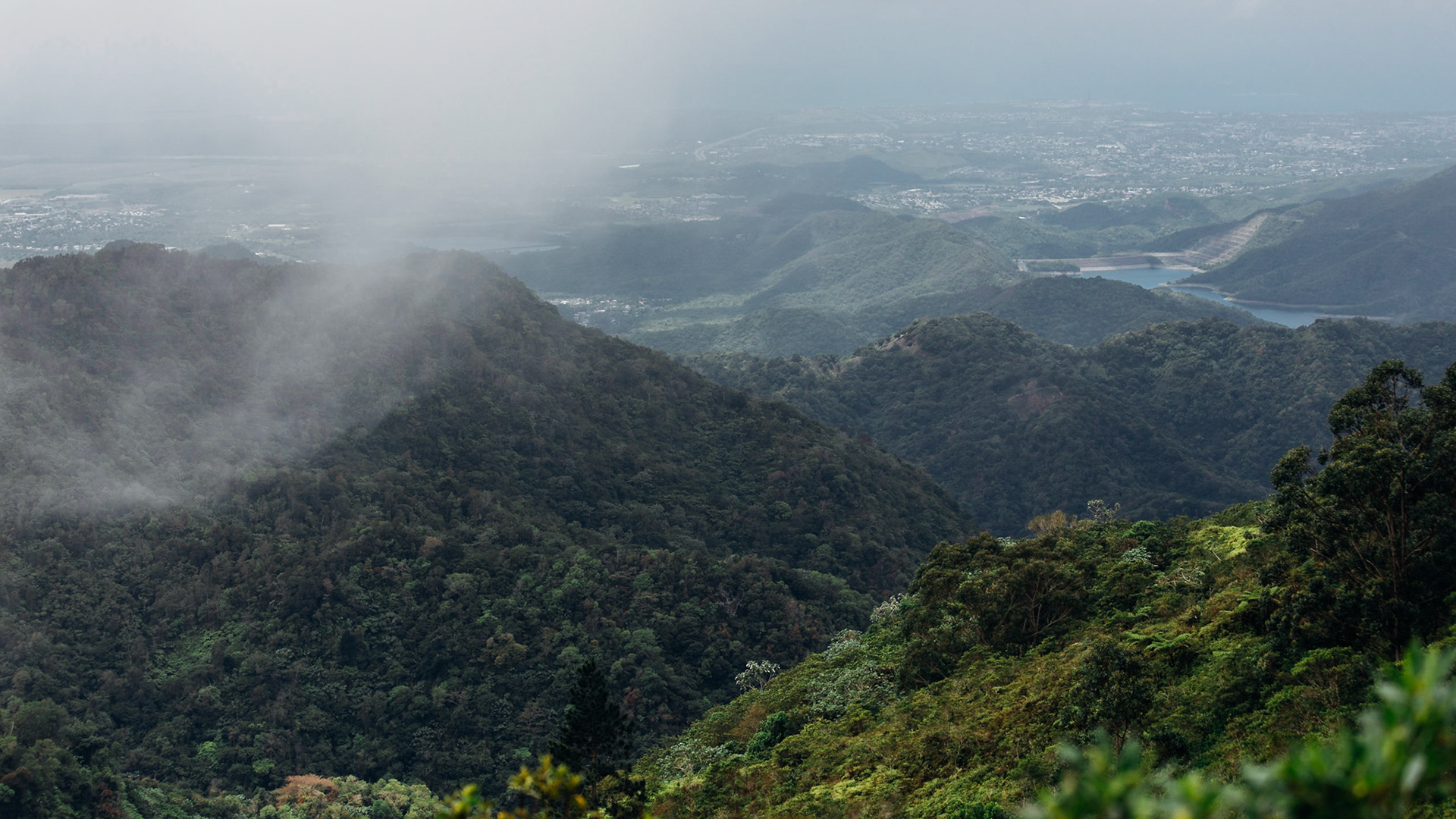 Montaña de El Yunque entre nubes. Río Grande, Puerto Rico.