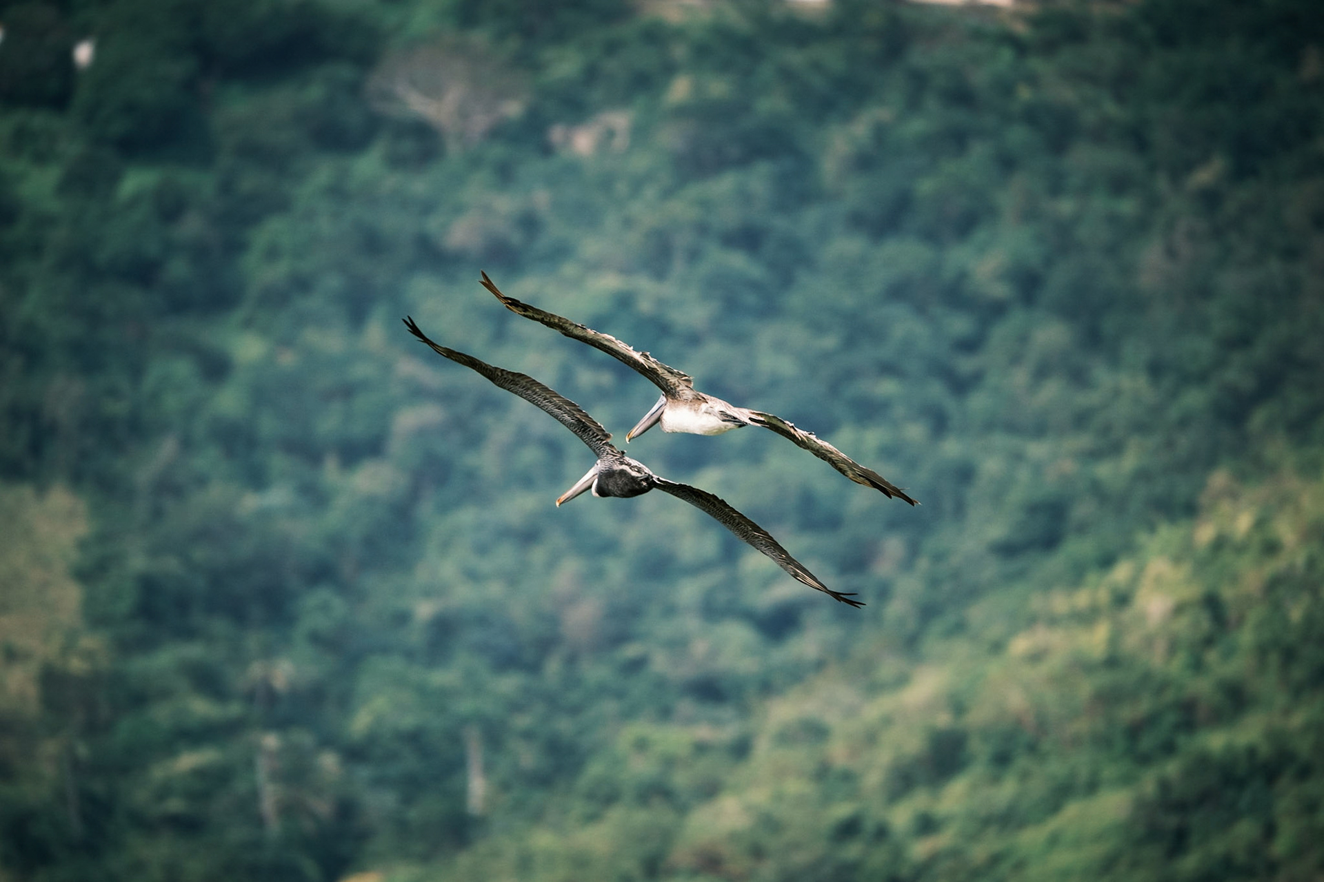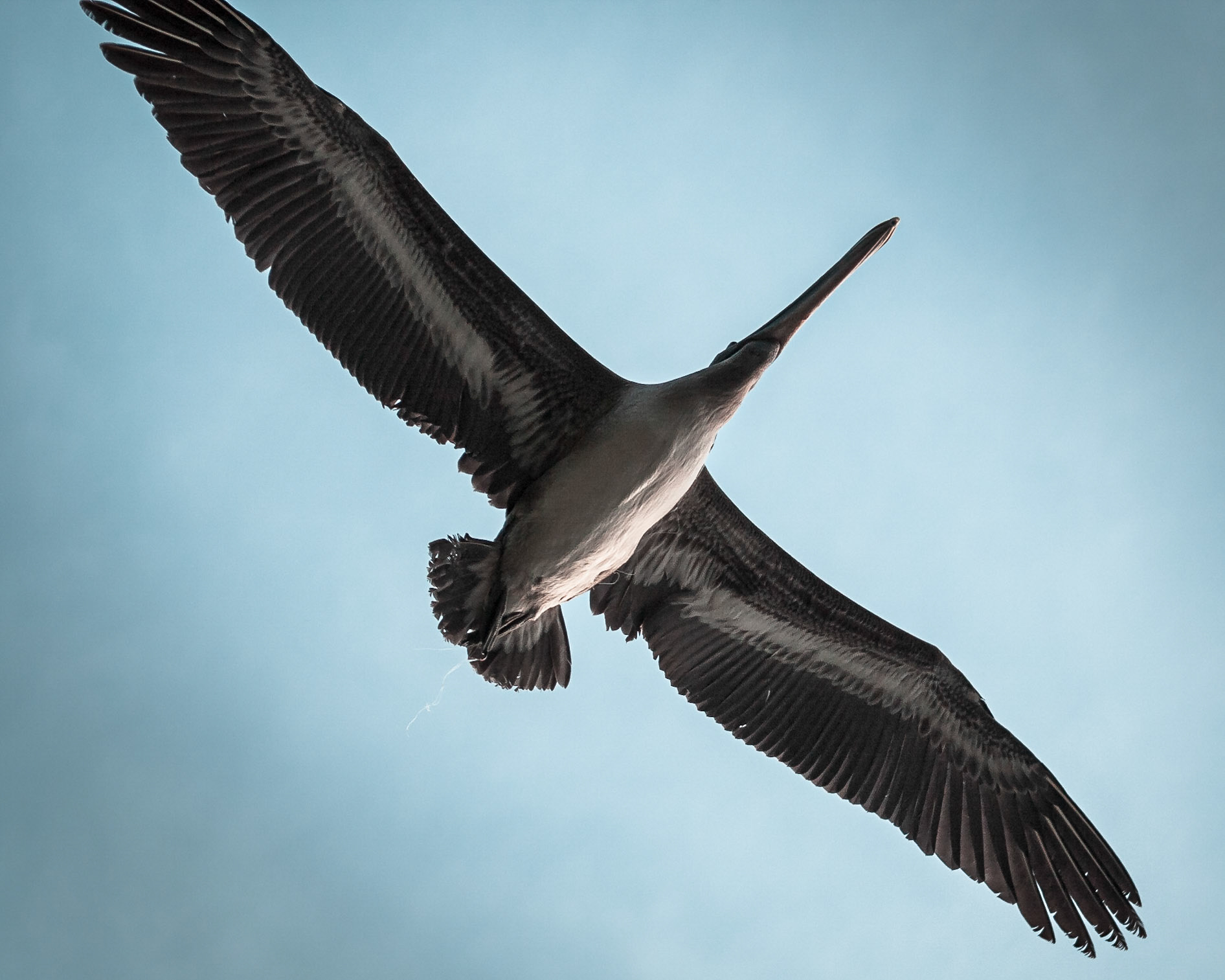 Silueta de un pelícano en vuelo.